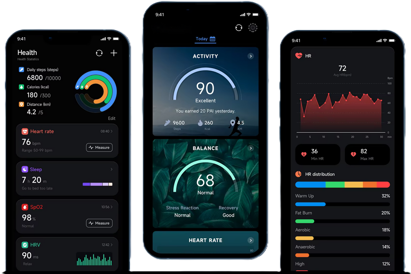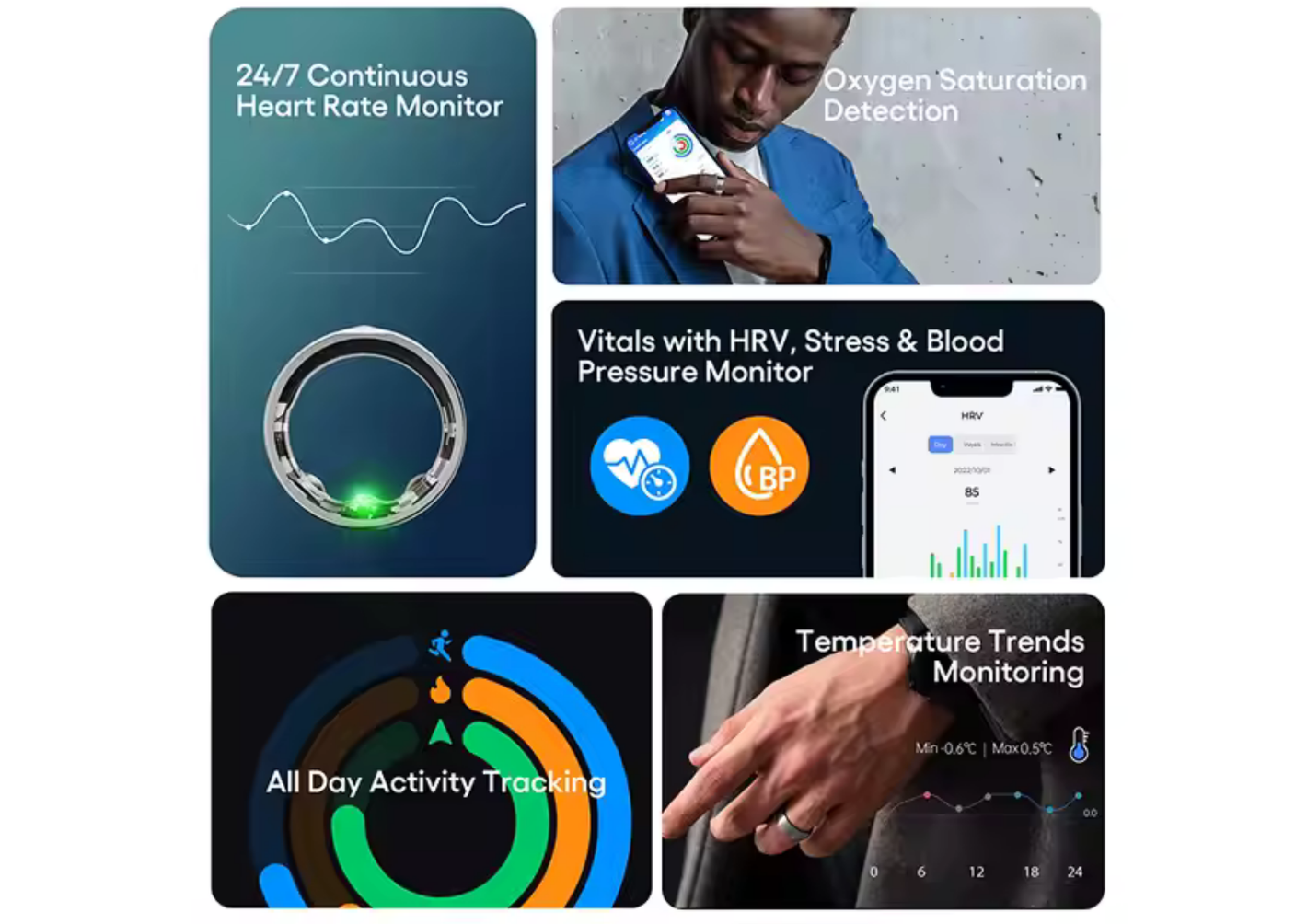 Comprehensive 24/7 Heart, SpO2, HRV Tracking